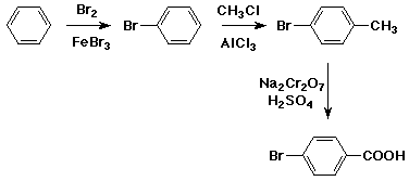 3. (3 pts) Write a sequence of reactions that could be used to prepare the compound below starting from benzene.