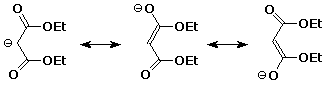 1. (2 pts) Write all the resonance forms for the most stable anion formed from malonic ester and sodium ethoxide.