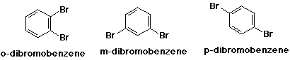 4. Ortho, meta, and para are common names for the different disubstitution patterns on benzene. Write structures for ortho-, meta-, and para-dibromobenzene.