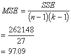 from Table G, using the table labeled .95 (for a=.05) and 3 and 27 d.f.