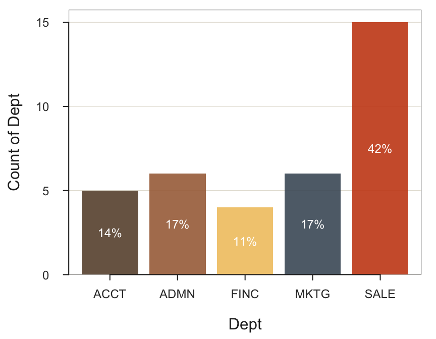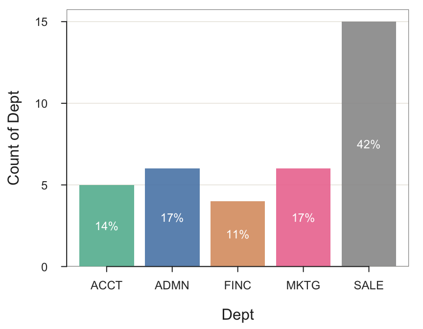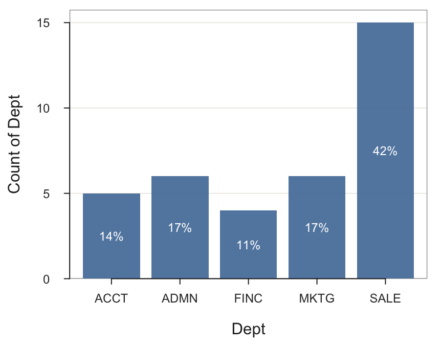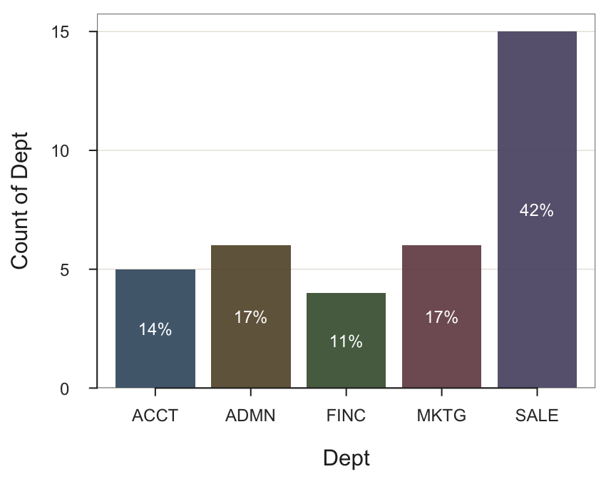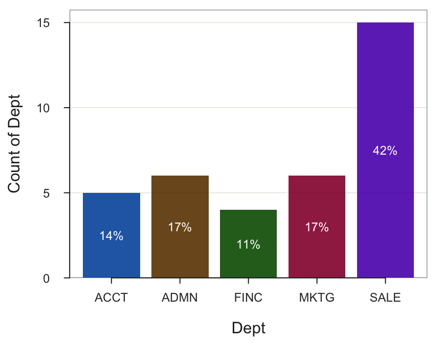 style(suggest=FALSE, quiet=TRUE)We use the employee data set for examples throughout this section.