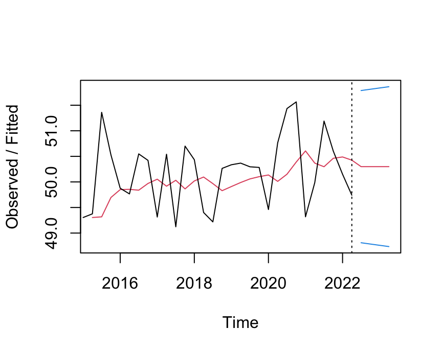 accuracy(fit)Compute the forecast: