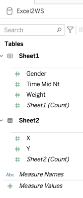When multiple data tables are selected, Tableau lists the tables under the Data tab by their names, shown in Figure 5. If only one day table is present, it is not named.