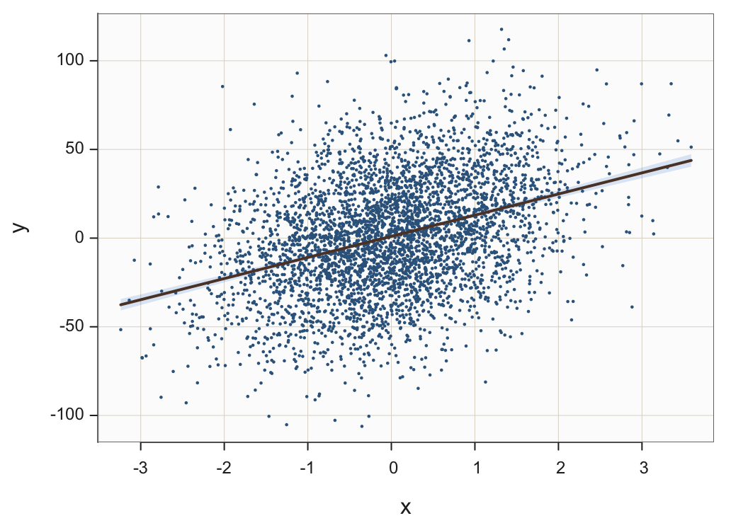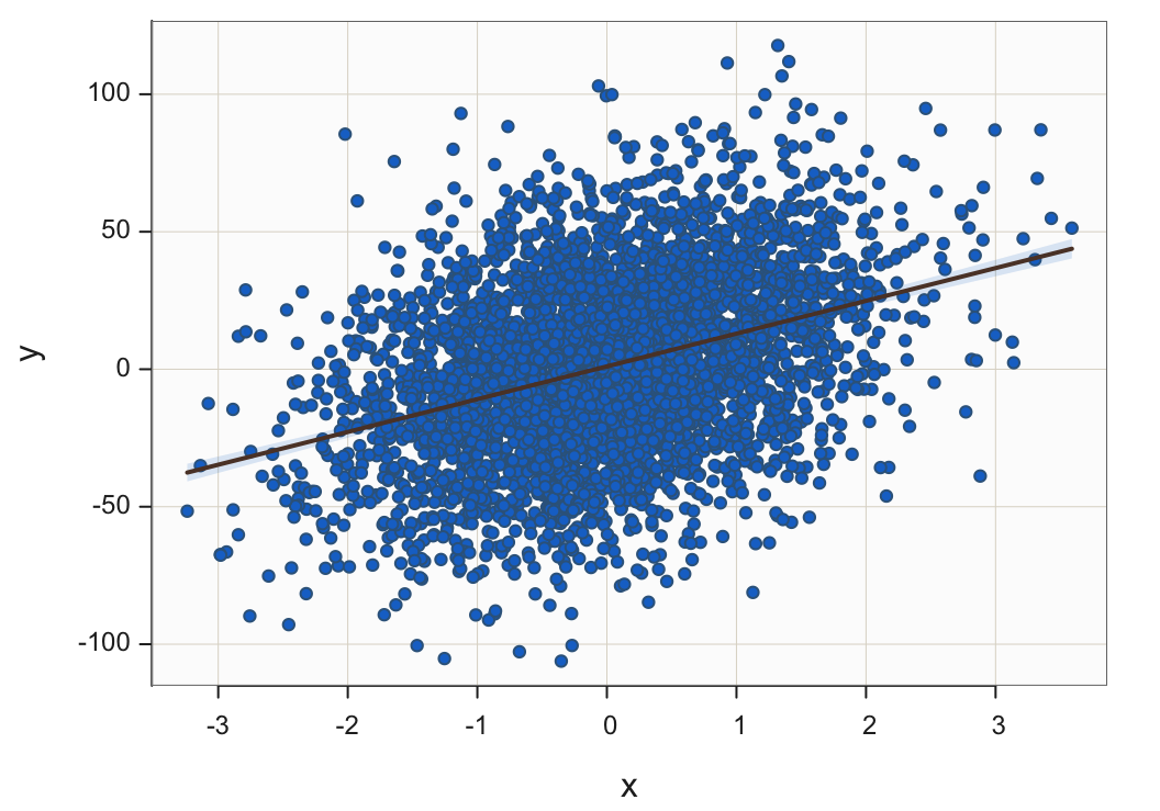 Plot(x, y, fit="lm", size=.25)