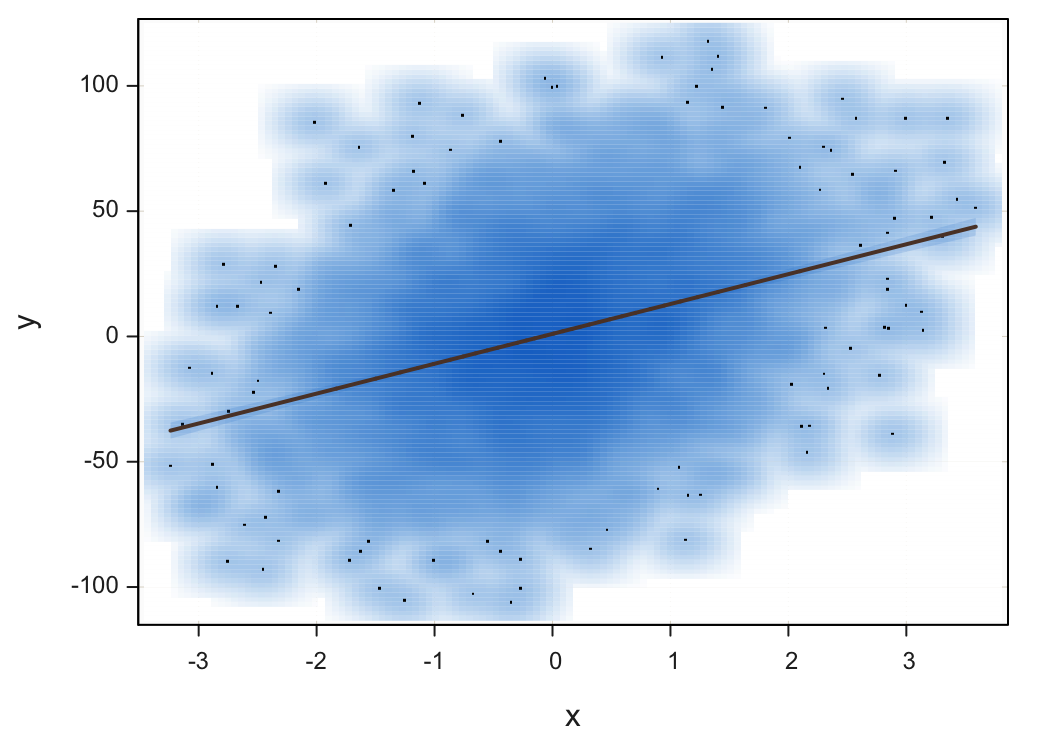 Transform a scatterplot of plotted points into a two-dimensional smoothed surface.