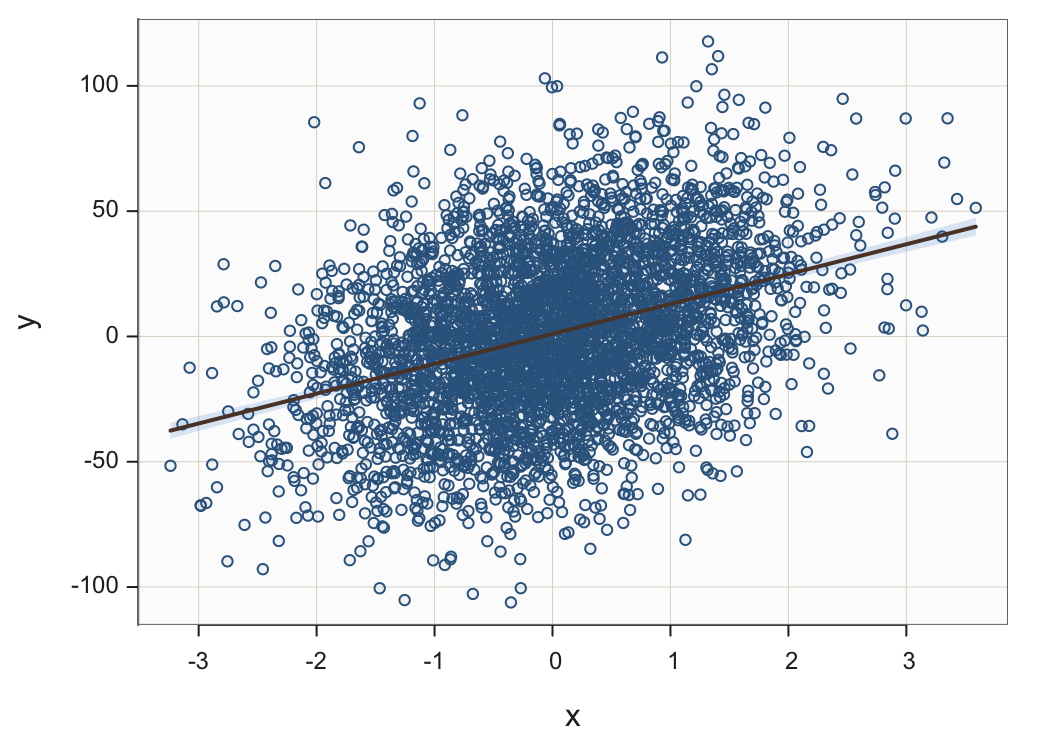Plot(x, y, fit="lm", transparency=.95)