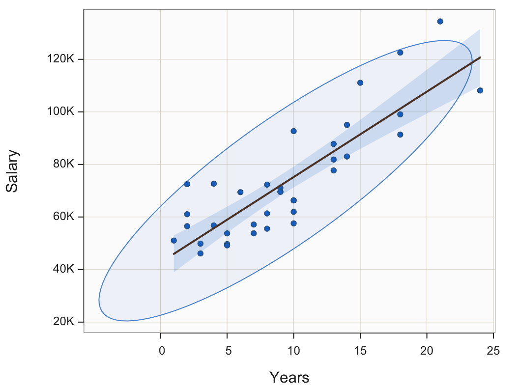 Sample Correlation of Years and Salary: r = 0.852