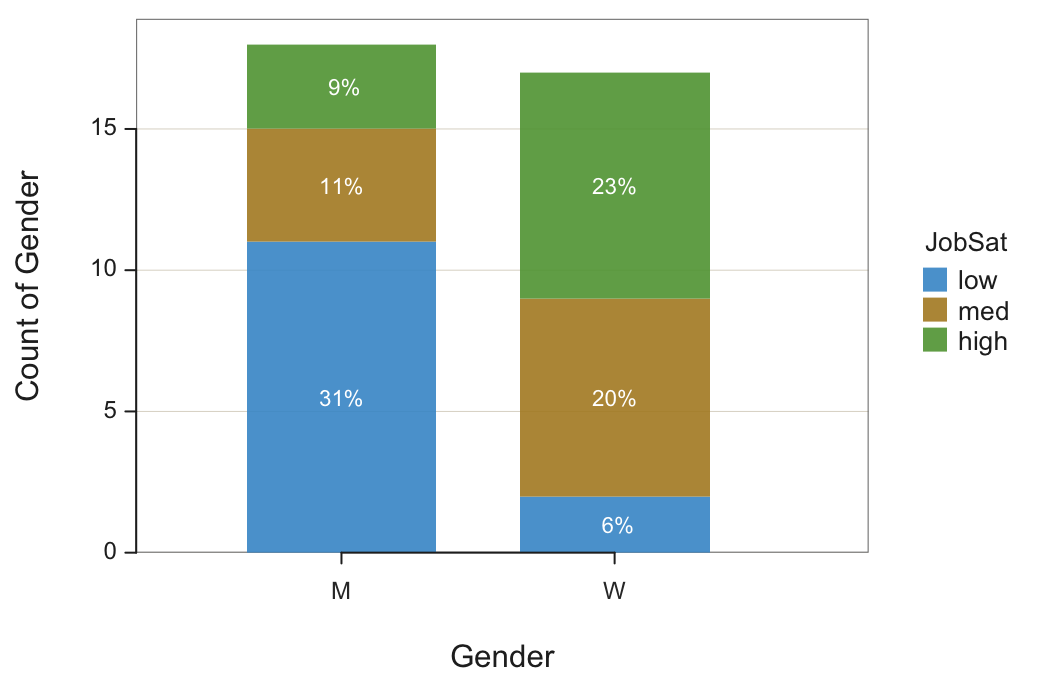 BarChart(Gender, by=JobSat)