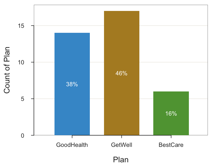 BarChart(Plan, xlab="Health Plan Categories", quiet=TRUE)