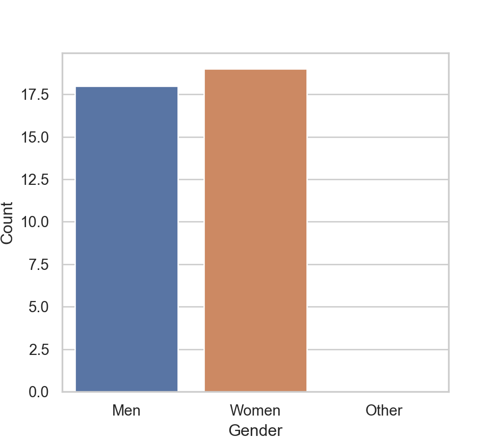 df['Gender'] = df['Gender'].map(Gender_map).astype('category')To show the bar chart with a potential data value with 0 count in this data set requires manually constructing the table of frequencies from which the bar chart will be constructed, instead of from the original data.