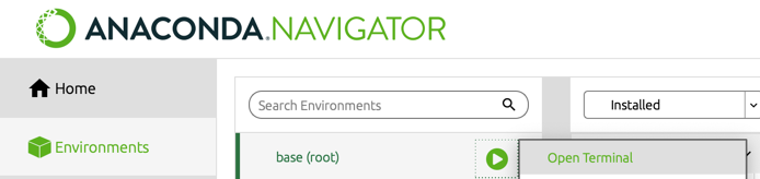 One way to access the command line is from within Anaconda Navigator as shown here.