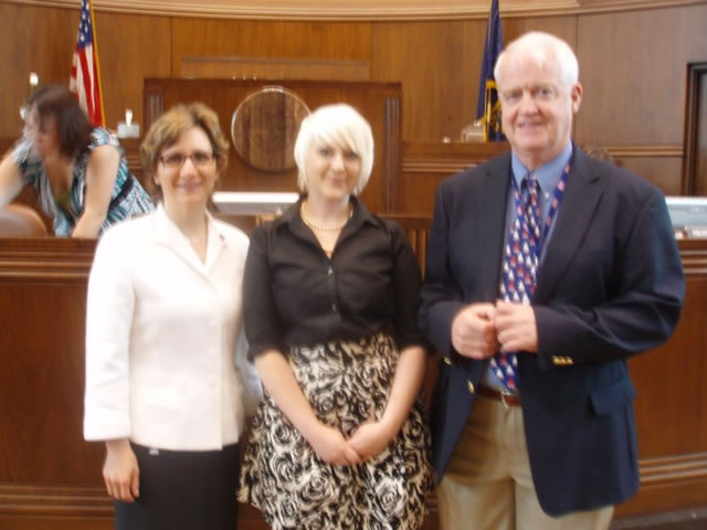 Senator Suzanne Bonamici, Kira Teppola, and Senate President Peter Courtney