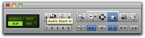 •With the audio imported, use the Audio Zoom In control to increase the height of the audio waveforms in the window.