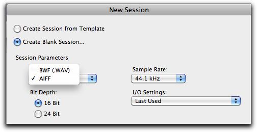 •Go File > New Session to open the New Session window, then, create a new "blank" session named Session Mixwith these settings: