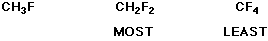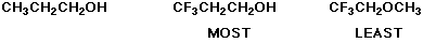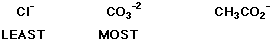 4. (15 points) Arrange each of the following in order with respect to the particular property indicated. Write MOST under the compound with the highest value or largest property and LEAST under the compound with the lowest value or smallest property.