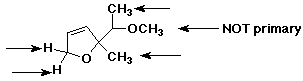 c) (4 points) Identify all the primary hydrogens in the molecule.