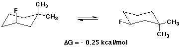 8. (10 points) Write both chair conformations for 3-fluoro-1,1-dimethylcyclohexane.