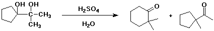 5. (10 points) Write a complete mechanism for the pinacol rearrangement shown below. Show all steps and electron-pushing arrows.