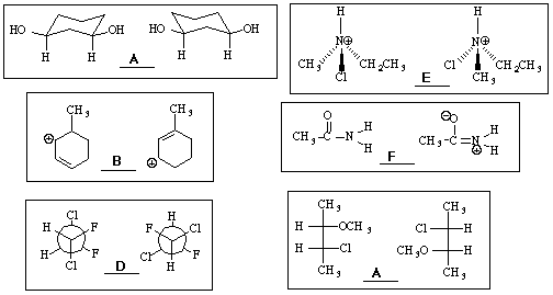 D = diastereomers, E = enantiomers, F = resonance structures, G = none of these