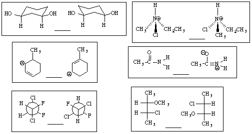 11. (18 points) Identify the relationship between the following pairs of molecules as one of the following: