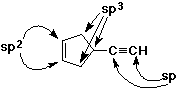 2. (3 points) Identify the hybridization of each carbon atom in the structure below.