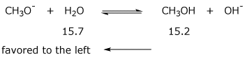 2. (6 points) Complete the following acid-base reactions and predict the preferred direction of the equilibrium (right or left) by citing the relevant pKa values (using the table on the back of this sheet).