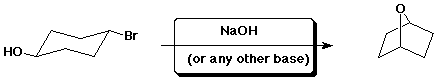 In base, OH- is a strong nucleophile that attacks the less-substituted carbon as in a typical SN2 reaction. The chiral center is not affected.