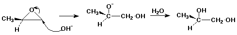4. (20 points) Write a balanced reaction for hydration of 2-methyloxirane (propylene oxide) to 1,2-propanediol.