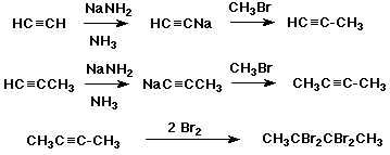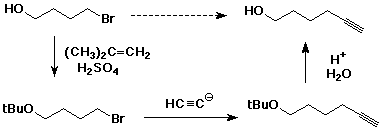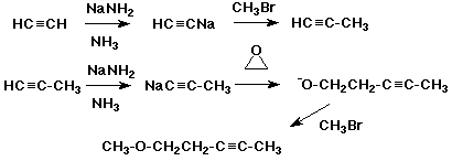 7. (12 points) Write out a sequence of reactions that could be used to accomplish each of the following syntheses. Show the necessary reagents and conditions for each reaction step, but do not show mechanisms. Use acetylene, ethylene oxide (oxirane), and methyl bromide as the only source of carbons.