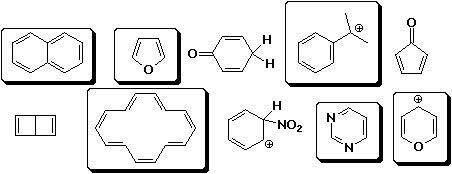2. (10 points) Circle the compounds below that would qualify as aromatic according to Hückel's rule.