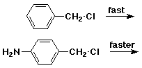 6. (15 points) Amino-substituted benzyl chloride undergoes much faster SN1 reaction than the corresponding unsubstituted benzyl chloride. Explain by showing all the resonance forms for the expected intermediate of the amino derivative.