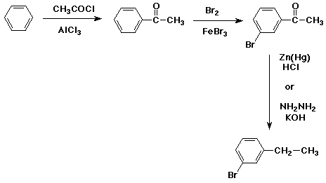 7. (15 points) Write a synthetic sequence of reactions that could be used to make EITHER ONE of the compounds below, starting from benzene. Just do one of the two (or your first effort will be the one graded).