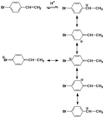 10. (15 points) Write all resonance forms for the cationic intermediates that would be formed in the following reactions: