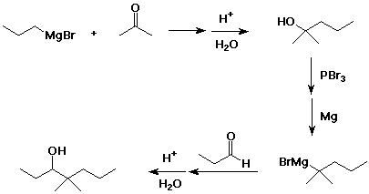 2. (6 pts) Write a sequence of steps that could be used to synthesize the compound below, using any 3-carbon compounds as the only sources of carbon.