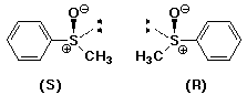 3. (2 pts) Sulfoxides can be chiral. Write both enantiomers for methyl phenyl sulfoxide and identify the R and S configurations.