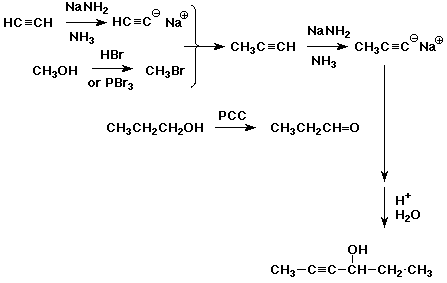 8. (14 points) Write out a sequence of reactions that could be used to accomplish EITHER ONE of the following conversions. Show the necessary reagents and conditions for each reaction step, but do not show mechanisms. As starting materials you may use acetylene, any alcohol that has three carbons or fewer, plus any needed solvents or inorganic reagents. JUST DO ONE OF THE TWO.