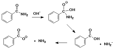 7. (10 points) Write a complete mechanism for the base-catalyzed hydrolysis of benzamide. Show all steps.