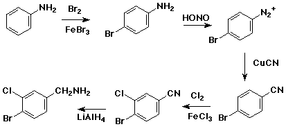 of chlorine with FeCl3 catalyst and p-dibromobenzene.