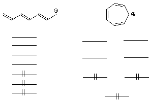 3. (3 points) Write the expected pattern of energy levels and the electron occupancy for the pi molecular orbitals of the two cations below.
