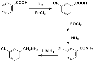 3. (3 points) Write a synthetic sequence that would convert benzoic acid to m-chlorobenzylamine. Show the reagents needed for each step, but mechanisms are not necessary.