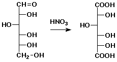 Nitric acid oxidizes an aldose at both ends, as illustrated for D-glucose :