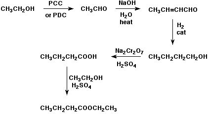 5. (10 points) Write a synthetic sequence of reactions that could be used to make the compound shown below using ethanol as the only source of carbon.