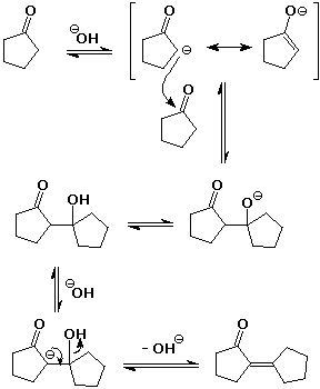 3. Write a complete mechanism for the NaOH-catalyzed aldol reaction of cyclopentanone, including dehydration.