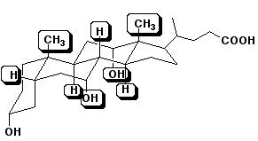 2. (4 pts) Place all the substituents of cholic acid properly on the chair forms. Circle all substituents that are added in axial positions.