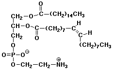 3. (2 pts) Write the structure of a phospholipid made from one C-16 saturated fatty acid, one C-18 unsaturated fatty acid, 2-aminoethanol, glycerol, and phosphate.