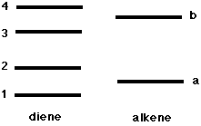 115. The pi MOs of a typical diene and an alkene are shown below. The Diels-Alder reaction works best with electron-deficient alkenes because this improves the bonding interaction between MOs