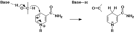 7. (10 points) Show how NAD+ , represented below, can be used to oxidize an alcohol, using electron-pushing arrows to represent the movements of electron pairs. Show the products formed and indicate what else would be needed for acid or base chemistry.