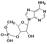 1. (2 points) Write the complete structure of cyclic AMP, in which the 3' and 5' positions are joined by a single phosphate.