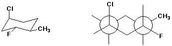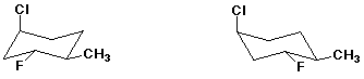 Select one isomer that has two chair conformations of unequal energy and write the structure for the better conformation.