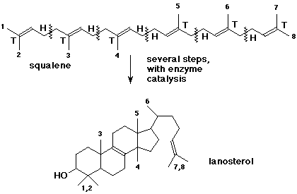 8. (12 points) The origin of steroids in many organisms is from cyclization of squalene into lanosterol, as shown below.